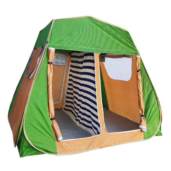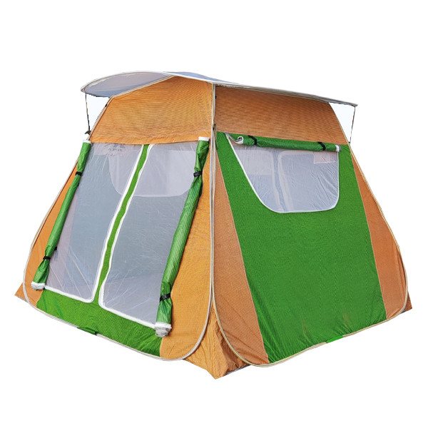 چادر مسافرتی، مناسب طبیعت گردی و کمپینگ میباشد . این محصول دارای 4 درب و دو پنجره بزرگ است . دارای 20 قلاب نگهدارنده در وپنجره و توری است . کف ضخیم است و جنس چادر ضد آب است . داخل چادر یک پارچه قرار دارد که با نصب آن می توانید محیط داخل چادر را به دو قسمت تقسیم کنید . در قسمت درب ها و پنجره ها توری حریر ریز بافت کار شده است. ابعاد 250x250 ارتفاع 2.10 می باشد.