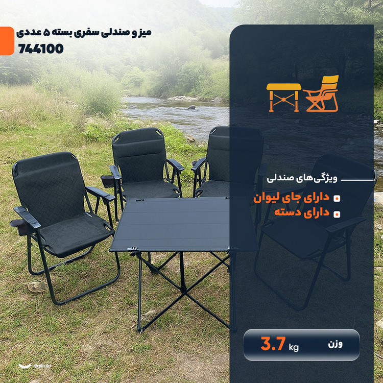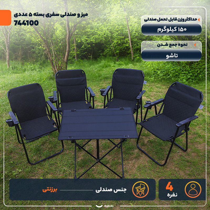 میز و صندلی سفری تاشو 4 نفره مدل 744100 مجموعه 5 عددی