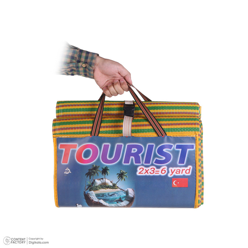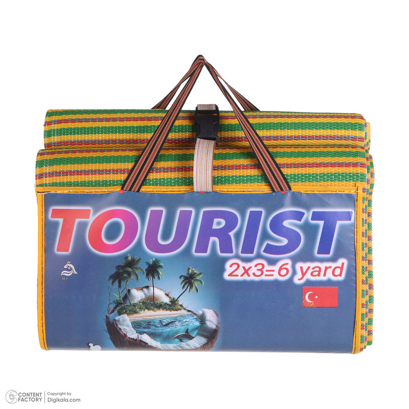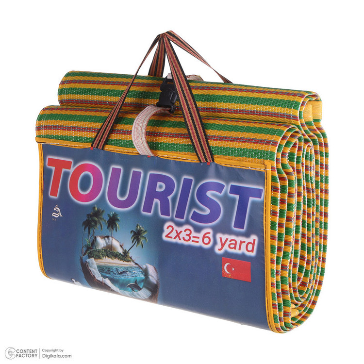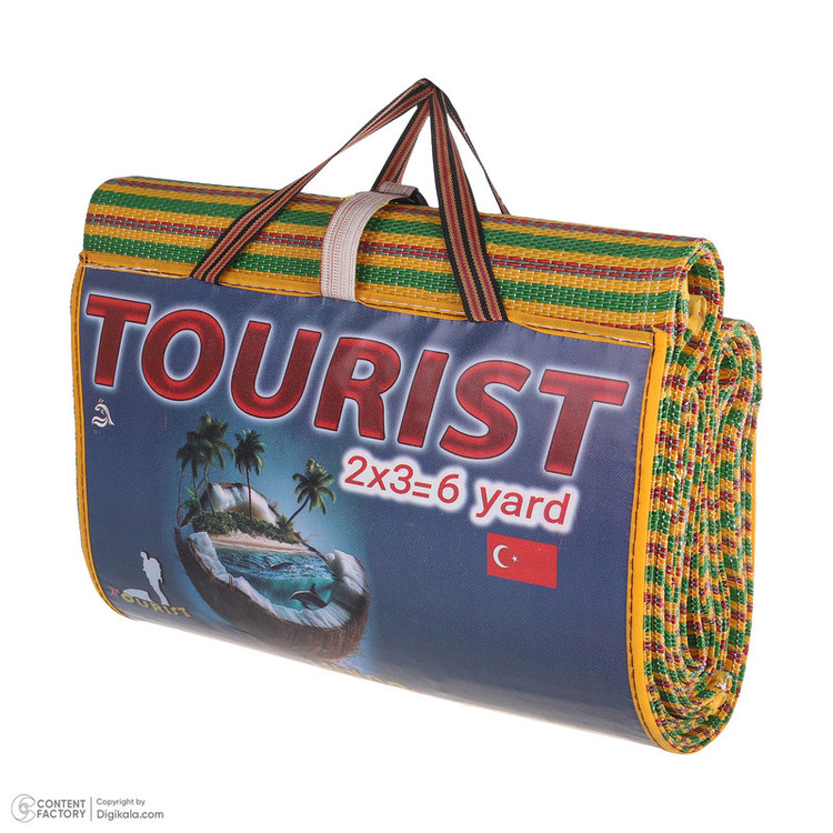 حصیر توریست 6 متری جهت استفاده در سفر است که از مواد نو ساخته شده دارای بند دستی برای حمل آسان است رنگ آن چند رنگ است که به زیبایی آن افزوده