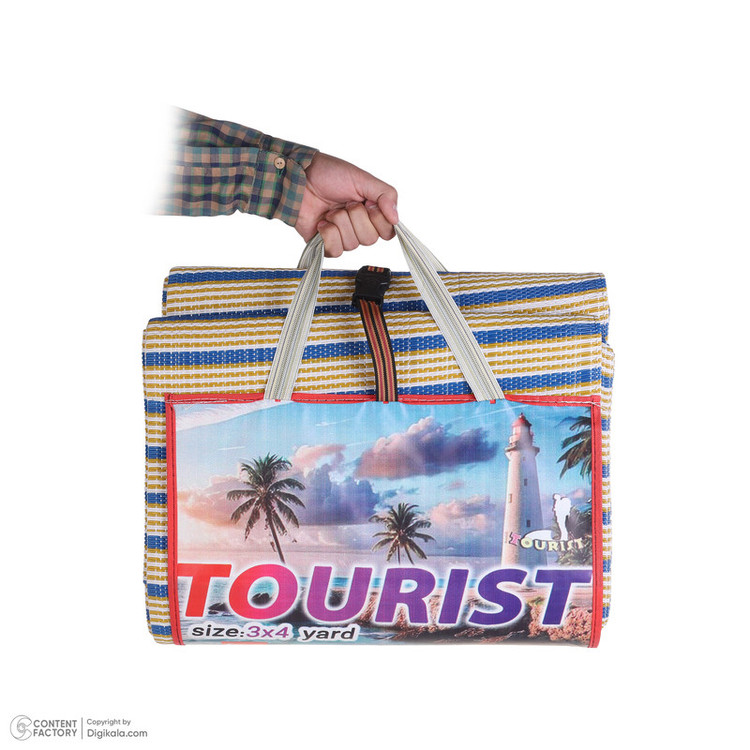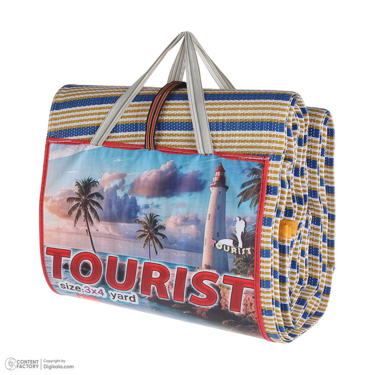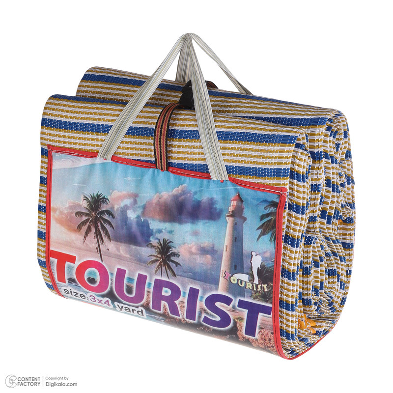حصیر توریست 12 متری جهت استفاده در سفر است که از مواد نو ساخته شده دارای بند دستی برای حمل آسان است رنگ آن چند رنگ است که به زیبایی آن افزوده