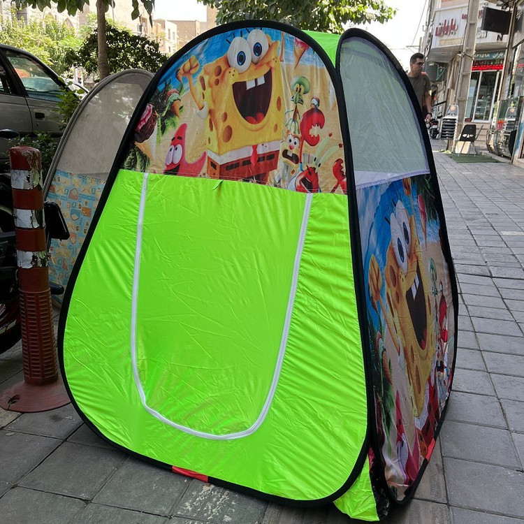 چادر بازی کودک مدل فنری تاشو طرح باب اسفنجی و پاتریک با درب زیپی و توری دوزی کد1
