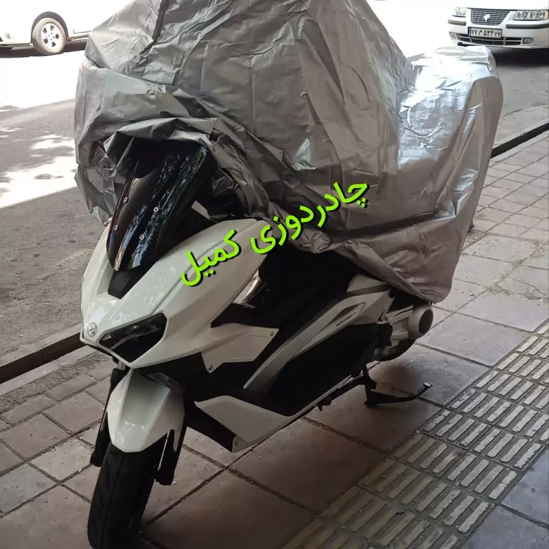 با درود و احترام ابعاد این چادر شمعی به اندازه ای دوخته شده که باکس عقب موتور و طلق بلند جلوی موتور را می پوشاند عقب و جلو کش دوخته شده و جای بستن از زیر موتور دارد دارای کاور جهت بسته بندی می باشد و بسیار سبک و کم حجم است