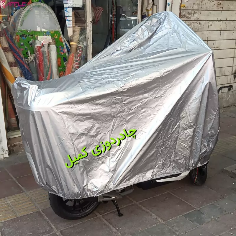 با درود و احترام ابعاد این چادر شمعی به اندازه ای دوخته شده که باکس عقب موتور و طلق بلند جلوی موتور را می پوشاند عقب و جلو کش دوخته شده و جای بستن از زیر موتور دارد دارای کاور جهت بسته بندی می باشد و بسیار سبک و کم حجم است