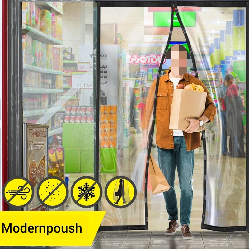 استفاده از درب های پلاستیکی /طلقی (مدرن پوش) برای جلوگیری از ورود سرما و حتی گرما به داخل ساختمان میباشد و یکی دیگر از مزیت های این پرده مانع شدن از ورود حشرات موذی به داخل ساختمان و اتاق و یکی از بهترین روش ها برای رهایی دائم از شر این موجودات موذی و حتی بیماری زا می باشد. مزیت درب پلاستیکی/طلقی (مدرن پوش) این است که علاوه بر دارا بودن مگنت های مغناطیسی(آهن ربا) قوی به راحتی نصب شده و حتی در صورت عدم نیاز میتوانید این درب را از روی چارچوب نصب شده جدا کنید و هر زمان که نیاز شد مجددا به سادگی آن را نصب کنید.این محصول از جنس طلق شفاف بوده و نوار حاشیه آن به رنگ طوسی میباشد که به جذابیت پرده اضافه کرده است.دقت کنید که روی پکیج های جدید این محصول جعبه وجود دارد و روی جعبه ادرس سایت و نام مدرن پوش مطابق تصاویر سایت درج شده است