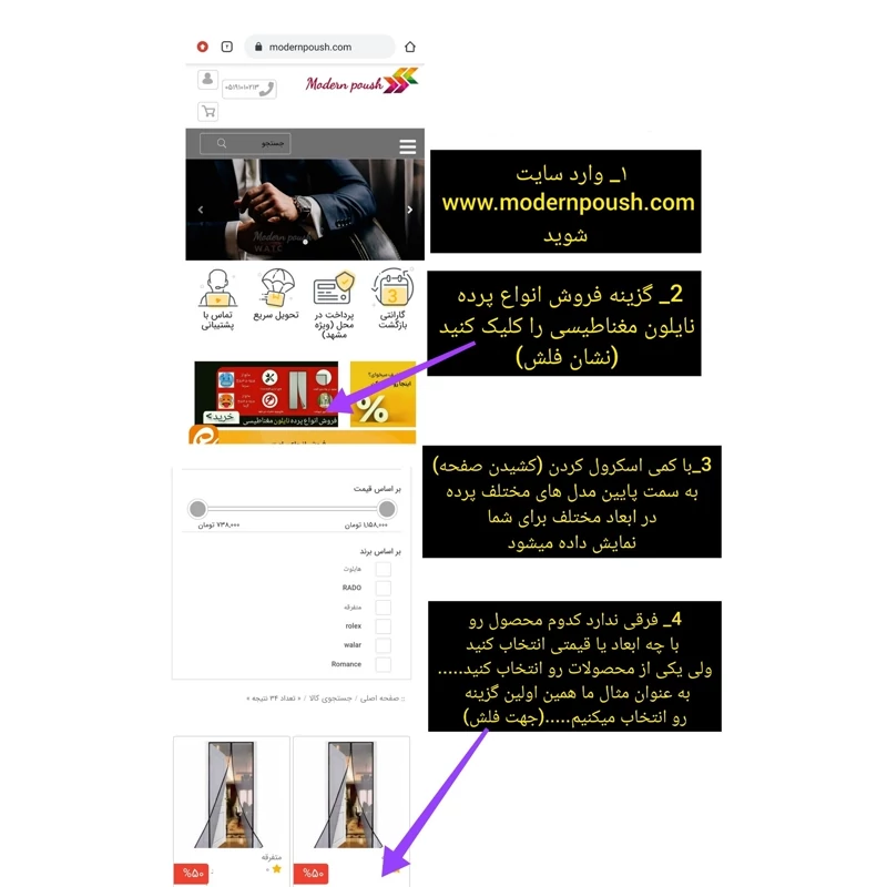 پرده نایلون مگنتیک عرض 100 در ارتفاع 210 پلاستیکی طلقی(مغناطیسی) مدرن پوش کد 1740