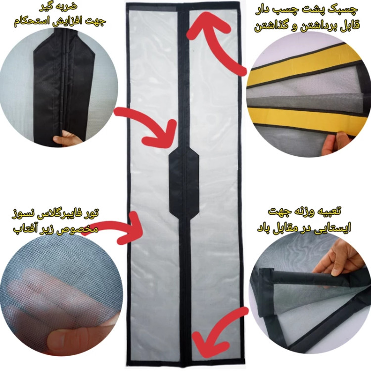 پرده توری آهنربایی 120در220 سانت مدل جدید (ضمانتی) آهنربا یکسره ضربه گیردار، توری مگنتی تور مغناطیسی درب توری آهنربادار