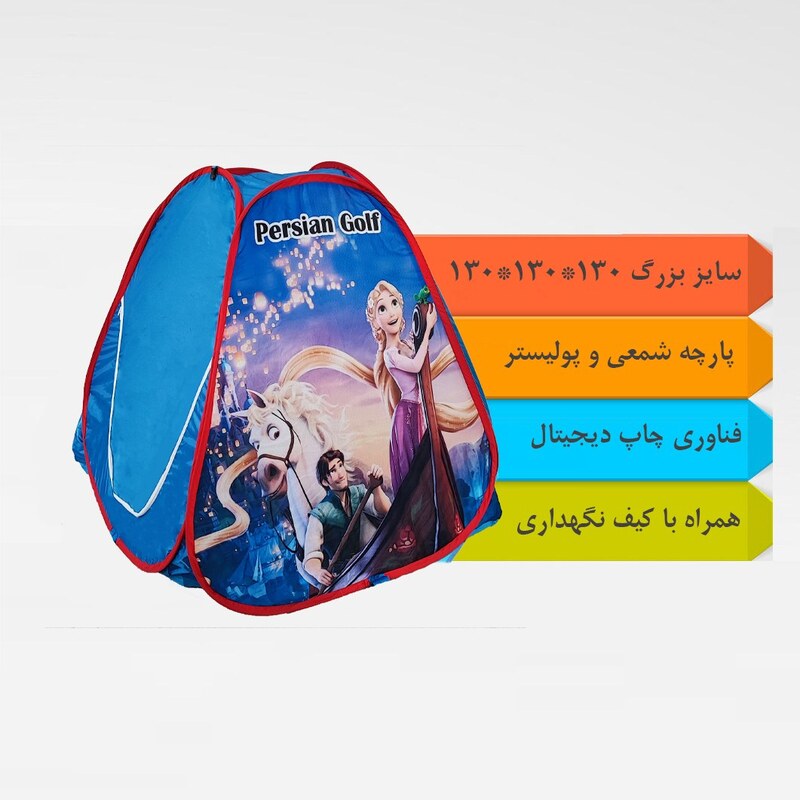چادر کودک یکی از بهترین وسیله های بازی برای کودکان می باشد و آن هارا ساعت ها به بازی و سرگرمی مشغول میکند . چادر های کودک گروه تولیدی پرشین گلف در طرح و رنگ متنوع و بسیار جذاب تولید شده تا دنیای کودکان را زیبا تر کند . برای کودکان از نظر ذهنی بسیار مشغول کننده و باعث افزایش خلاقیت ، شادابی و اعتماد به نفس می شود. از منظر تربیتی می توان کودکان را به حفظ نظم ، پاکیزگی و مسئولیت پذیری تشویق کرد. این محصول با بهره گیری از فناوری چاپ دیجیتال ، استفاده از پارچه مرغوب شمعی و پولیستر و فنر های مستحکم تهیه شده است . محیط داخل چادر محلی مناسب برای اسباب بازی های کودکان می باشد این محصول با ظاهری زیبا دارای یک درب و پنجره می باشد و همچنین به راحتی در تمامی فضاهای باز و بسته قابل استفاده است همراه این چادر کودک یک عدد کیف برای حمل و نگهداری تقدیم عزیزان می شود.