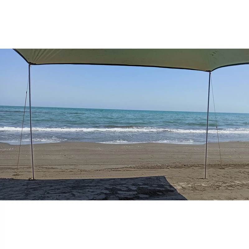 سایبان سفری دانانیک مدل SB104، یک ابزار مورد نیاز جهت کمیپنگ، سفر به شمار میرود. با توجه به فروش بالا و رضایت خریداران از سایبان سفری دانانیک مدل SB103، تلاش شد سایبان سفری دانانیک مدل SB104 با برتریهایی نسبت به مدل قبلی به بازار عرضه گردد. از جمله برتریهای این مدل نسبت به مدل قبل در به کارگیری میخهای با ضخامت و ارتفاع بیشتر، افزایش تعداد نقاط اتصال سایبان، تغییر فرم کیف حمل، استفاده از ستونهای آبکاری و سرستونهای پیچ و مهرهای، استفاده از طنابهایی با مقاومت بالاتر است. احتمالا برای شما پیش آماده برای تفریح به طبیعت رفته باشید، سایه مناسب درختی برای گذراندن روز پیدا نکرده و زیر آفتاب، روز ناخوشایندی را سپری نموده باشید. سایبان سفری دانانیک با حجم و وزن کم، گزینه مناسب برای کمپینگ و سفر است تا شما را در مقابل اشعه خورشید و بارش بارانهای ناگهانی محافظت نماید. این سایبان به اشکال مختلف در طبیعت قابل برپایی است و همچنین از آن میتوان در کنار خودرو نیز برای لذت بردن از سفر و تفریح استفاده نمود. در شرایط خاص از این سایبان میتوان به عنوان چادر اضطراری نیز بهره گرفت. پارچه سایبان از جنس پلی استر با خاصیت آبگریزی و مقاوم در برابر اشعه فرابنفش است تا از شما در مقابل تابش خورشید محافظت نماید. ستون های سایبان از هشت لوله 50 سانتی متری تشکیل شده که قابلیت نصب در ارتفاعهای گوناگون را فراهم میکند. ضمنا با تهیه یک جفت ستون اضافه، میتوان اشکال سایبان با چهار ستون را جهت افزایش سایه بیشتر برپا نمود. این سایبان با وزن 2.2 کیلوگرم به راحتی قابل حمل توسط طبیعتگردان و گردشگرانی است که با اتومبیل، دوچرخه، موتورسیکلت و پیاده سفر میکنند تا در مسیر خود یا در دل طبیعت از این پوشش برای استراحت و در امان ماندن از نور خورشید، باران و حتی برف استفاده نمایند.
