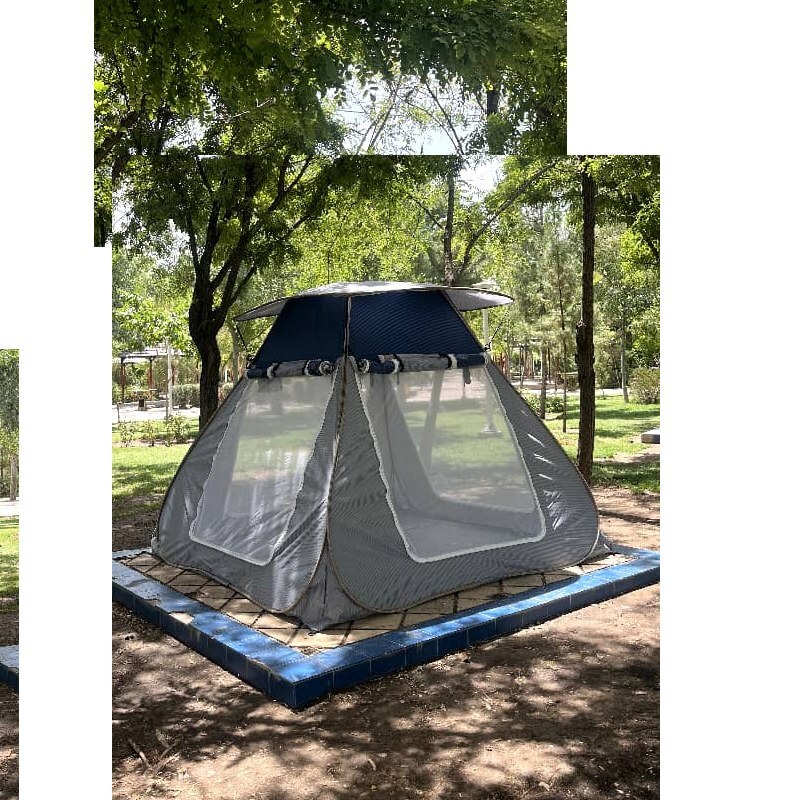 دارای چهار درب بزگ و توری دارای پنجره بر روی درب ها سقف باز و بزرگ ارتفاع بلند کف ضخیم قلاب دور چادر نوار ابریشم محافظ فنر 2/5 طول 2/5 عرض ارتفاع210 سایبان روی سقف ضدآب و ضد آفتاب رنگبندی ارسال به صورت روزانه با پست و پیک بالاترین کیفیت موجود در کشور