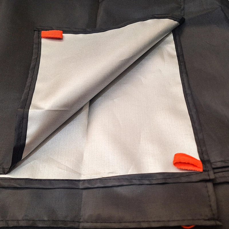در این سایه بان برای پایداری و مقاومت بیشتر در برابر کشش به جای استفاده از حلقه از نوار برای اتصال طناب استفاده شده است. در وسط سایه بان بندی برای آویز کردن چراغ کمپینگ نیز تعبیه شده است به دلیل ضد آب بودن در روزهای بارانی نیز برای ایجاد پناه باران قابل استفاده می باشد