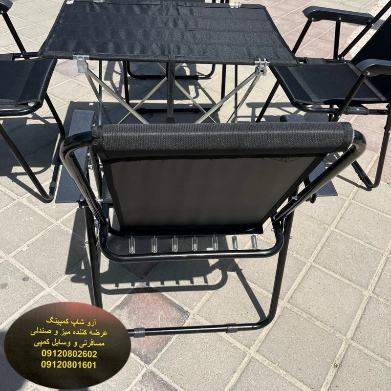 مشخصات : ست میزو صندلی تاشو دسته مبلی مسافرتی2 نفره دارای 7 فنر و فوم دار متریال ها: پارچه سومیت، فلزضد زنگ , فوم و تسمه ی تقویت کننده