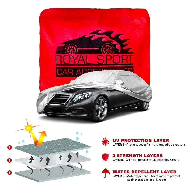 چادرهای خودروی شمعی رویال اسپرت، از جنس پلی استر پشت نقره هستند که محصولی سبک، ضد آب، ضد گردو غبار و محافظ نور خورشید است. این محصول بسیار کم حجم با وزن کم است مناسب برای افرادی که با حجم چادرهای خودرو در صندوق خودرو مشکل دارند و نیاز به محصولی کاربردی و سبک دارند.