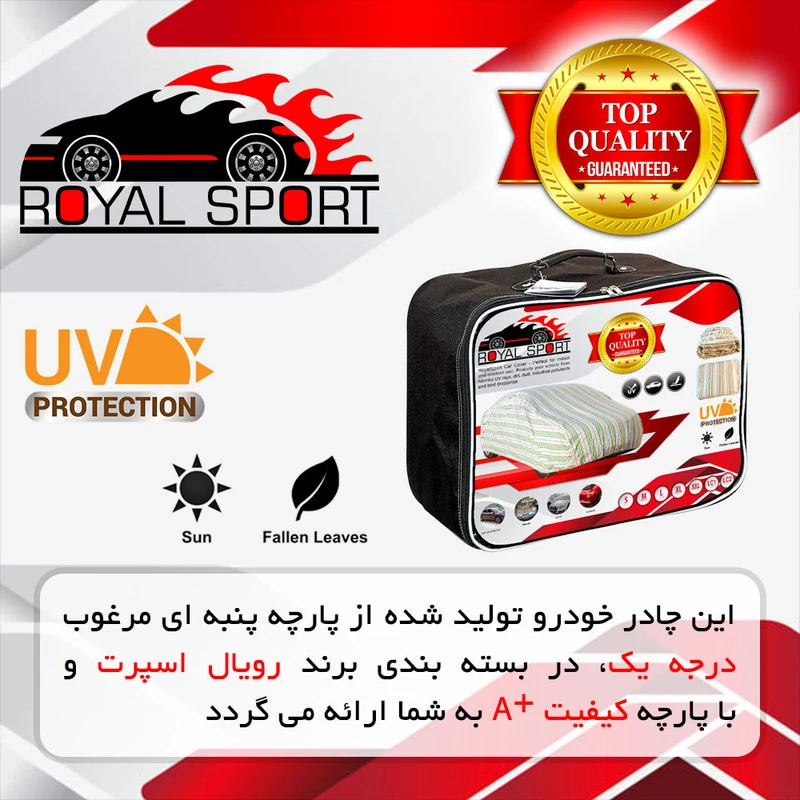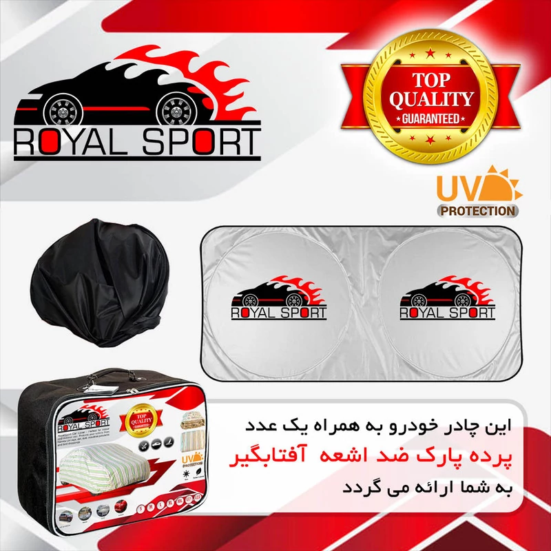این چادر خودرو در بسته بندی برند رویال اسپرت، تولید شده از پارچه مرغوب درجه یک و با کیفیت +GRADE A به همراه یک عدد پرده پارک ضد اشعه آفتابگیر به شما ارائه می گردد