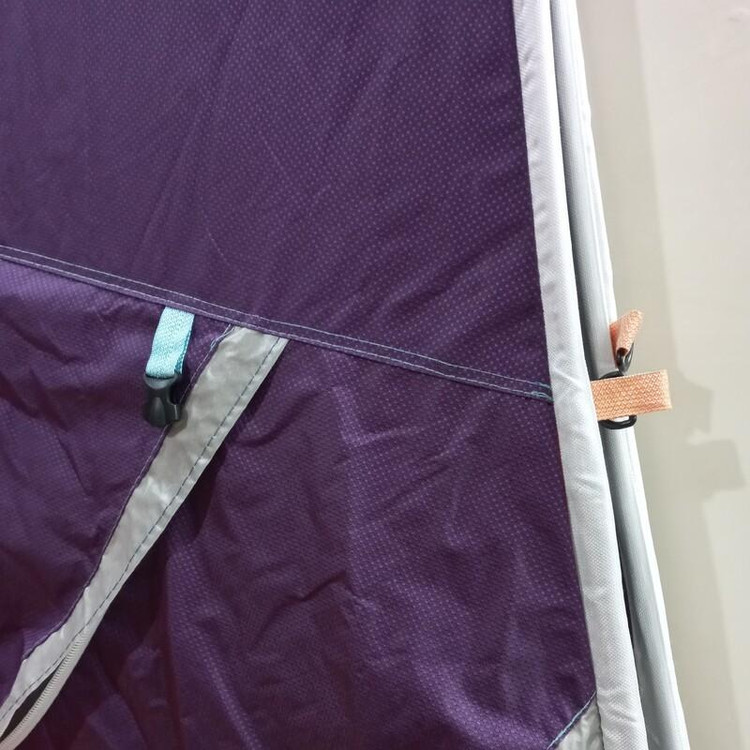دارای حلقه مهاری ،سه پنجره توری دار و همچنین درب توری دار حریر ، پنجره ها با وور حریر همداه با درب توری دار جهت تهویه بهتر هوای داخل چادر