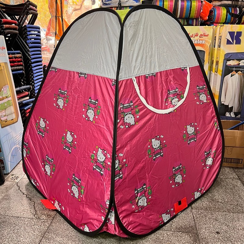 چادر کودک طرح کیتی مدل فنری سایز 2 نفره رنگ صورتی مناسب بازی و تفریح کد 2