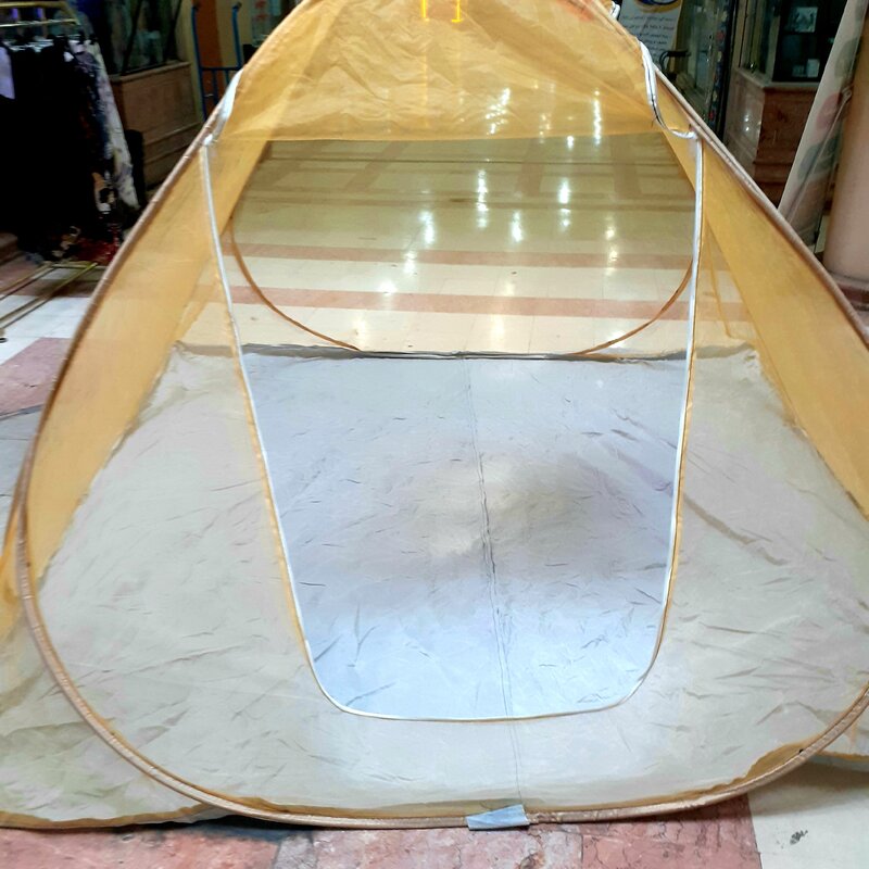 پشه بندمسافرتی فنری12نفره کف ضخیم تورحریر رنگ لیمویی ریزبافت