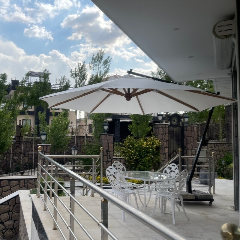 محصول: چترپایه کنار قطر سه متر دارای وینچ دستی برای باز و بسته کردن ، پایه بتنی ، چرخ دار ارسال باباربری ،بصورت پس کرایه است