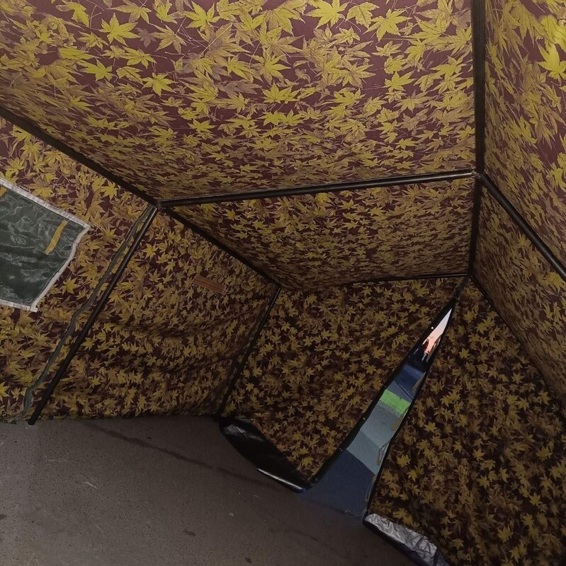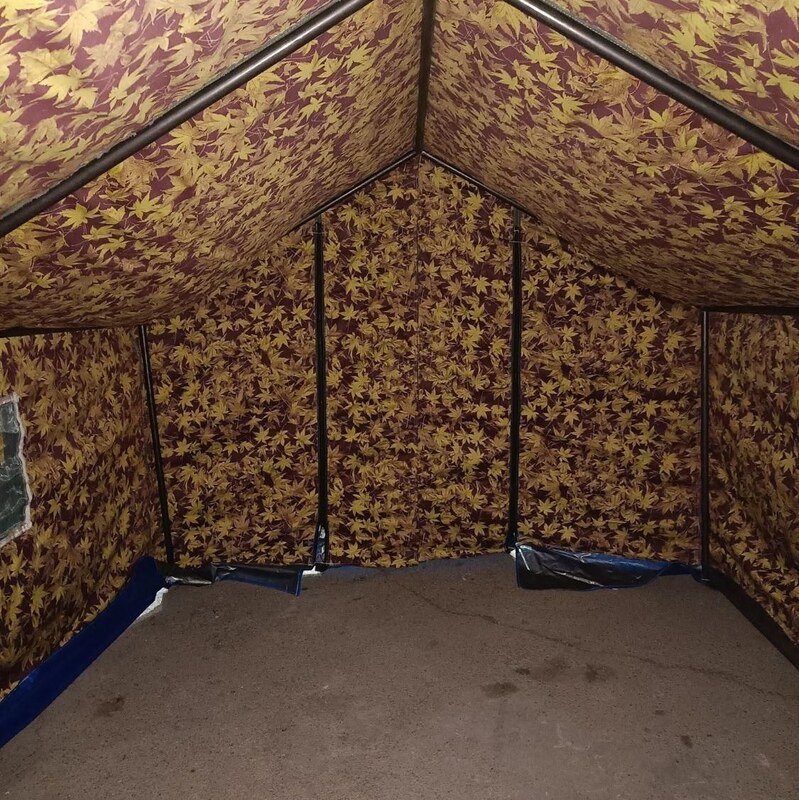 چادر خیمه اسکلتی برزنتی طرح خلیجی برگ و خزان آستر پنبه ای یا انتخاب آستر به سلیقه مشتری بدون نمونه در هیچ جایی به غیر از تولیدی ما ابعاد 3*4 اسکلت لوله گازی یک اینچ خاکریز جنس FIT ضد ریش شدن برزنت سبز روشن . تور فلزی ضد پارگی زیپ و بند دو کاره 3 جیب بزرگ حلقه نصب بر زمین حلقه های آویز داخل چادر مقاوم در برابر طوفان 100٪ ضد آب تضمینی