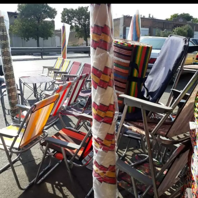 چتر سایبان قطر ۲ متری جنس مشمعا ضداب و ضد افتاب سه تیکه کفی اهنی،نیزه رابط،چتر سایبان