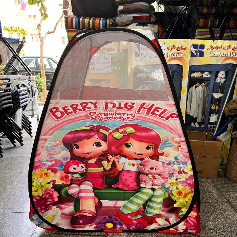 داشتن یک چادر بازی برای کودکان القاء کننده حس استقلال است و به آنها این امکان را می دهد که ساعتها با دوستان و یا اسباب بازی های خود در گوشه ای بدون ایجاد مزاحمت برای سایر اعضای خانواده سرگرم شوند چادر بازی کودک طرح دختر توت فرنگی محصولی است تولید شده با پارچه با کیفیت پشت نقره ، فنرهای قوی ، ستون های فایبرگلاس ، کف ضخیم و تا حدودی ضد آب که با افتخار توسط یک تولیدی ایرانی با بهترین متریال به بازار عرضه می گردد. طراحی و چاپ دیجیتال و منحصر به فرد این محصول که آن را نسبت به محصولات مشابه در بازار متمایز می کند منحصرا در اختیار این تولیدی است. چادر بچه طرح دختر توت فرنگی علاوه بر ظاهری کودک پسند وسیله ای کارآمد برای جمع آوری اسباب بازی ها توسط والدین است. این محصول با وزن سبک ، حمل آسان و کاور دایره ای شکل 40 سانتی متری به راحتی باز و بسته می شود و با ارتفاع 110 سانتی متر و طول و عرض 95 در 95 سانتی متر در گوشه ای از منزل ، مهد کودک، در مسافرت ها، کنار ساحل و ... قابل استفاد است. چادر بچه طرح دختر توت فرنگی با ظاهری زیبا و چشم نواز دارای پنجره توری تهویه ای مناسب برای فرزند دلبندتان بهمراه دارد و زیپ 150 سانتی متری با کیفیت با سرزیپ پلاستیکی رنگی و بی خطر ، این امکان را به کودک خواهد داد تا درب منزل شخصی خود را براحتی ببندد و به والدین کمک کند تا لوازم و اسباب بازی های بچه ها را در آن جمع آوری کنند. این محصول قبل از ارسال از لحاظ پارگی ، چاپ صحیح ، سلامت فنرها و زیپ ها مجدداً کنترل خواهند شد