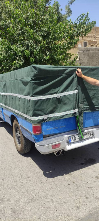 چادر وانت نیسان برزنت روباری جنس مرغوب اصفهان سایز ۳/۵در۴/۵ نواردوزی شده ۴ ردیف قلاب با صلیب پشت چادر Chadorneysan