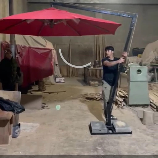 چتر بزرگ ۴ متری پایه کنار چرخشی ارتفاع ۲۳۰ سرگیر ، زیر چتر فلزی ، پارچه نانو رنگ بندی دارد