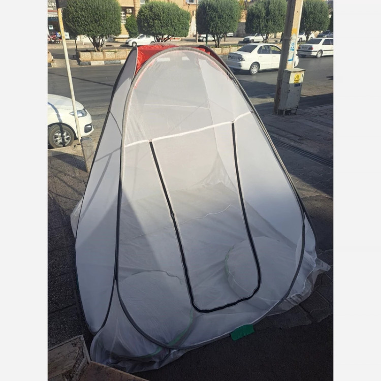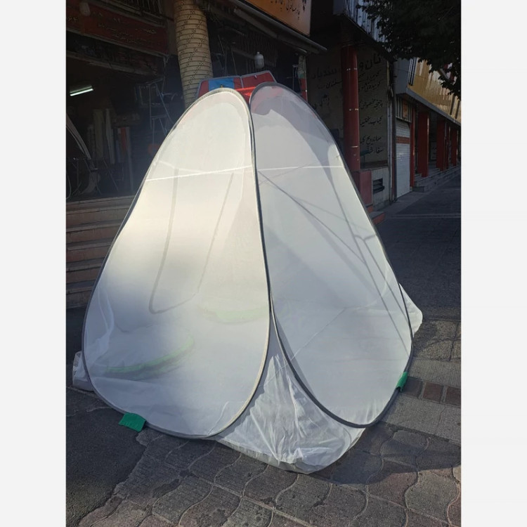 پشه بند مسافرتی با تور درجه یک جنس کف چادر ضد آب و زخیم جنس تور حریر درجه یک با ارتفاع بلند کف کار 2/5×2/5 فنرهای درجه یک با نوار ابریشمی زیپ درب برای راحتی از داخل بسته میشود