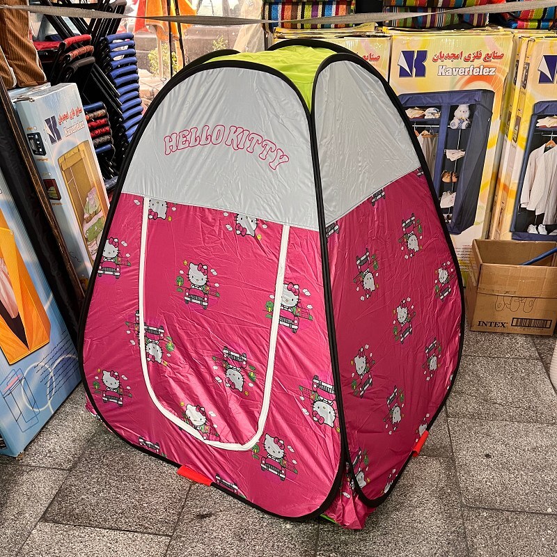 داشتن یک چادر بازی برای کودکان القاء کننده حس استقلال است و به آنها این امکان را می دهد که ساعتها با دوستان و یا اسباب بازی های خود در گوشه ای بدون ایجاد مزاحمت برای سایر اعضای خانواده سرگرم شوند چادر بازی کودک طرح کیتی( هلو کیتی) محصولی است تولید شده با پارچه با کیفیت شمعی پشت نقره ، فنرهای قوی ، ستون های فایبرگلاس ، کف اسپان بان و تا حدودی ضد آب که با افتخار توسط یک تولیدی ایرانی(پارس چادر) با بهترین متریال و نشان تجاری پارس به بازار عرضه می گردد. طراحی منحصر به فرد این محصول که آن را نسبت به محصولات مشابه در بازار متمایز می کند منحصرا در اختیار این تولیدی است. چادر بچه طرح کیتی( هلو کیتی) علاوه بر ظاهری کودک پسند وسیله ای کارآمد برای جمع آوری اسباب بازی ها توسط والدین است. این محصول با وزن سبک ، حمل آسان و کاور دایره ای شکل 43 سانتی متری به راحتی باز و بسته می شود و با ارتفاع 123 سانتی متر و طول و عرض 116 در116 سانتی متر در گوشه ای از منزل ، مهد کودک، در مسافرت ها، کنار ساحل و ... قابل استفاده است. چادر بچه طرح کیتی( هلو کیتی) با ظاهری زیبا و چشم نواز دارای پنجره زیپی تهویه ای مناسب برای فرزند دلبندتان به همراه دارد و زیپ 180 سانتی متری با کیفیت با سر زیپ پلاستیکی رنگی و بی خطر ، این امکان را به کودک خواهد داد تا درب منزل شخصی خود را براحتی ببندد و به والدین کمک کند تا لوازم و اسباب بازی های بچه ها را در آن جمع آوری کنند. این محصول قبل از ارسال از لحاظ پارگی ، چاپ صحیح ، سلامت فنرها و زیپ ها مجدداً کنترل خواهند شد